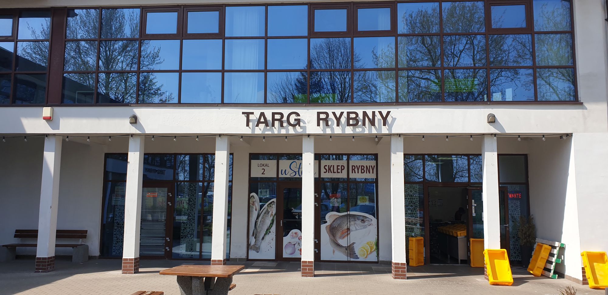 -zakup i montaż liter reklamowych do centrum sprzedaży ryb oraz lamp oświetleniowych na budynku. (ul. Szyprów 1, Kołobrzeg) w Porcie Rybackim . Litery tworzą napis informacyjny – „TARG RYBNY”. Napis został umieszczony na dwóch ścianach budynku i stanowi on reklamę sklepów sprzedających ryby – centrum pierwszej sprzedaży ryb. Profesjonalna reklama miejsca spełnia oczekiwania miejscowych sprzedawców z tej branży. Lampy oświetleniowe, które ulokowane zostały na tym samym budynku (Szyprów 1) ożywiają przestrzeń, podświetlają reklamę targu rybnego i promują miejsce.