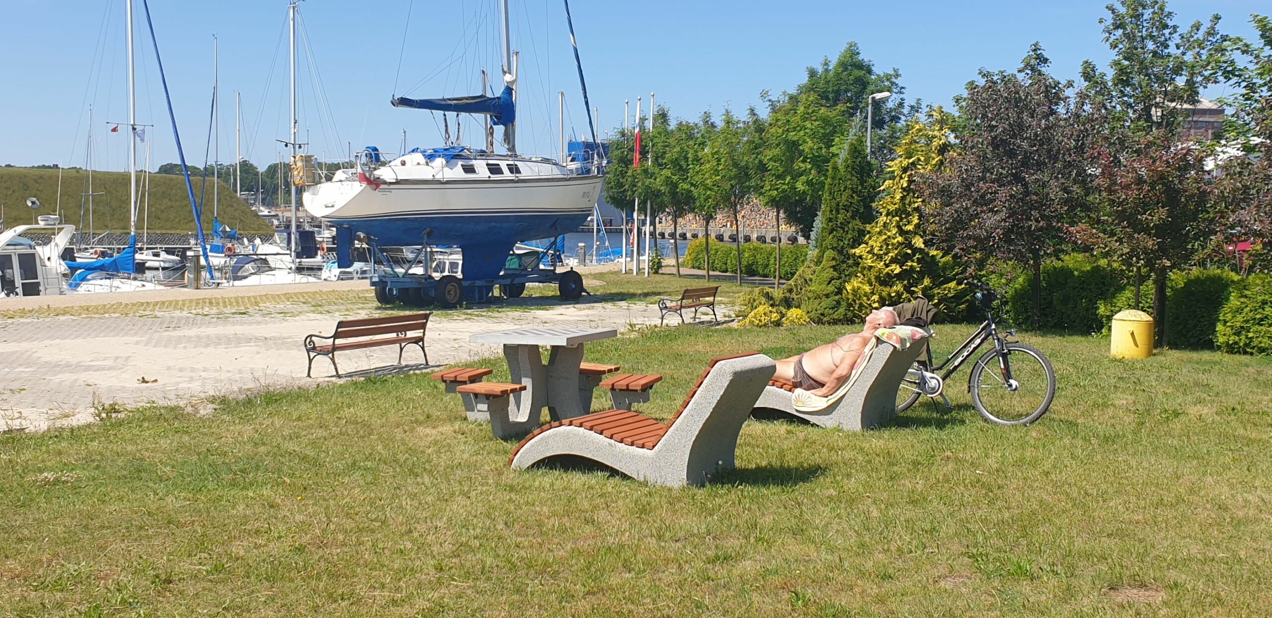 -zakup atrakcyjnego i estetycznego wizerunkowo zestawu małej architektury parkowej zawierającego leżaki, ławki i stolik szachowy. Przeznaczenie zestawu to rekreacja, odpoczynek dla odwiedzających Port Jachtowy oraz poprawa estetycznego wizerunku przestrzeni portowej.