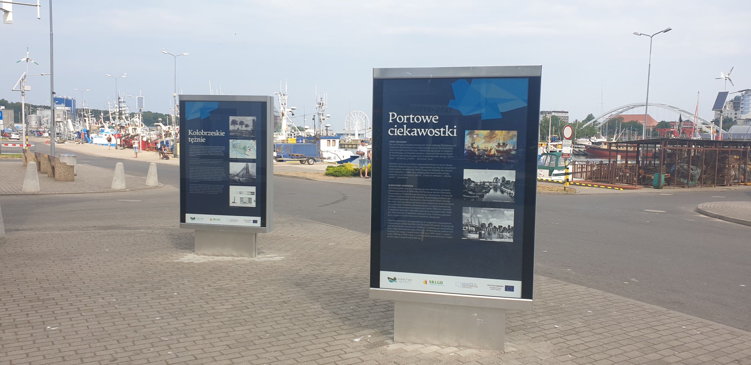 -zakup i instalację 2 tablic informacyjno-edukacyjnych wykonanych ze stali, stanowiących uzupełnienie historycznej stałej wystawy plenerowej funkcjonującej już na terenie Portu Jachtowego w Kołobrzegu. Powyższe witryny zostały zlokalizowane na terenie Portu Rybackiego przy ul. Szyprów 1. Treść ich dotyczy dawnych metod połowowych w Kołobrzegu, rybołówstwa wczoraj i dziś oraz informacji związanych z ekologią i zanieczyszczeniami Bałtyku.