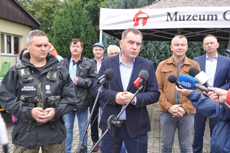 Podczas zwołanej konferencji prasowej starosta kołobrzeski Pan Tomasz Tamborski wraz z komendantem Społecznej Straży Rybackiej Powiatu Kołobrzeskiego Andrzejem Skwarkiem zaprezentowali sprzęt i wyposażenie zakupione na potrzeby funkcjonowania straży.